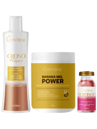 R$ 115,00 4x de R$ 28,75 s/jurosKit Hidratação Capilar Crono Repair Centirse 3 produtos