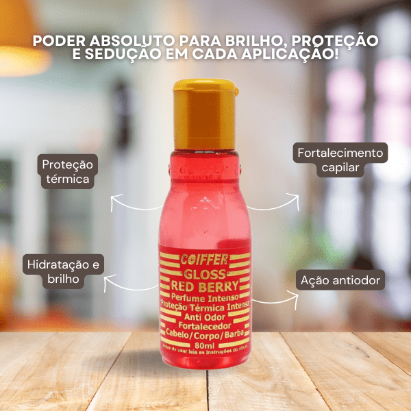 Gloss Red Berry Coiffer – Brilho, Resistência e Proteção para Cabelos e Pele