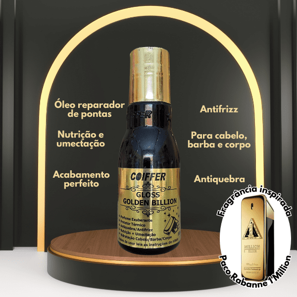 Coiffer Gloss Golden Billion 80ml – Finalizador e Reparador de Pontas Perfumado