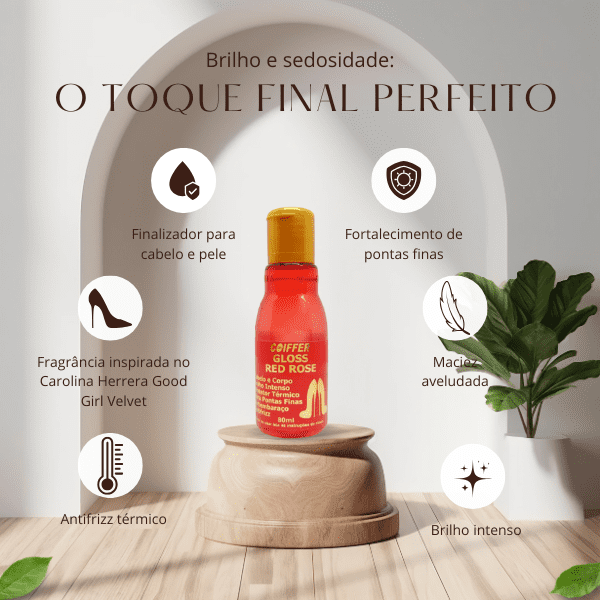Gloss Red Rose Coiffer 80ml Brilho e Proteção Térmica