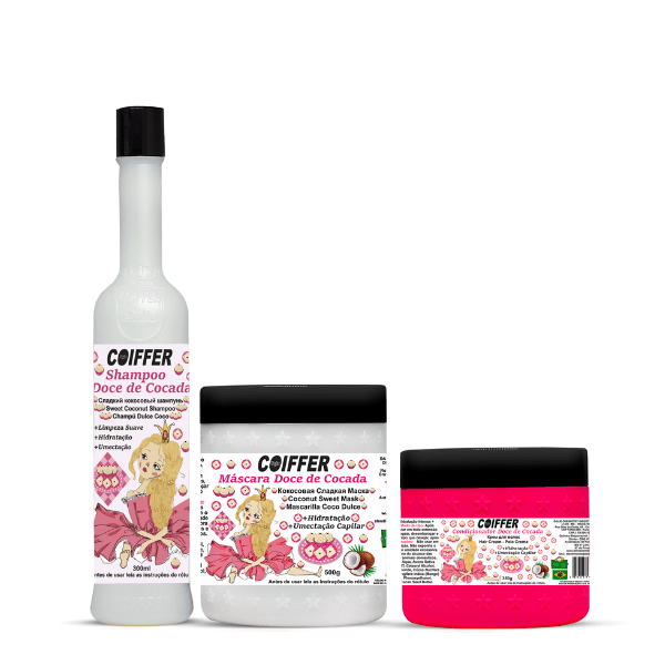 O Kit Doce de Cocada Coiffer tem como finalidade uma hidratação Intensa + umectação, ajuda a manter a hidratação natural dos fios restaurando a camada lipídica, nutrindo, doando brilho e melhorando a textura dos fios.