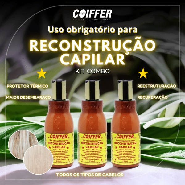 O Leave-In Reconstrução Capilar Coiffer</strong> hidrata, repara e fortalece cabelos danificados. Indicado para todos os tipos de fios, com fórmula leve, hipoalergênica e de alto rendimento.